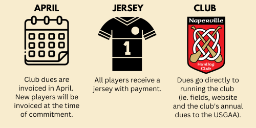 We also require that players register with the USGAA, (United States Gaelic Athletic Association), which must be competed by April 30th every year for returning players.